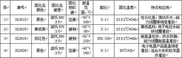 世林的微動開關用灌封膠,有這么幾種產(chǎn)品,主要是在耐溫等級有區(qū)別,當然灌封膠的顏色,配比這些都可以做一些參考,包括施膠后的固化工藝要求。具體見下表: