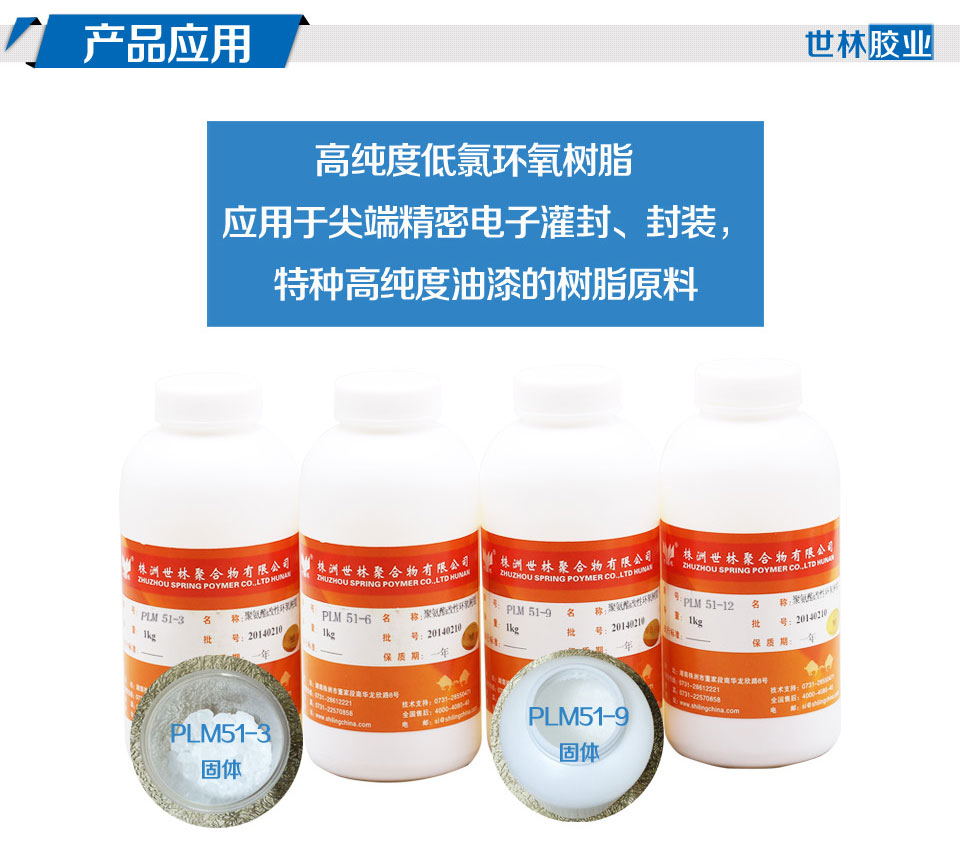 高純度低氯環(huán)氧樹(shù)脂  PLM51-3  是專業(yè)用于高尖端電子產(chǎn)品封裝和高尖端電子產(chǎn)品灌封的原材料,將這些高純度低氯環(huán)氧樹(shù)脂加入到他們?cè)瓉?lái)的配方體系里面,降低灌封膠的總氯含量,改善電子灌封膠的耐腐蝕性能,令電子產(chǎn)品能更好起到封裝效果,能更好的應(yīng)用于大型產(chǎn)品裝配中,起到很好的鏈接作用。